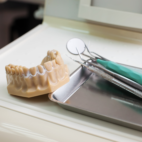Wir bedienen einen großen Bereich der Zahntechnik durch Veneer-, Brücken-, und Kronentechnik, vollkeramische Restaurationen, Teleskop- und Geschiebetechnik wie auch der herausfordernden Totalprothetik.