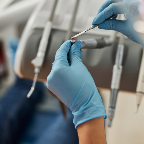 Eine speziell ausgebildete Prophylaxeassistentin führt dies in schonender Weise mit grazilen Instrumenten durch. Die Zähne werden anschließend poliert und fluoridiert.